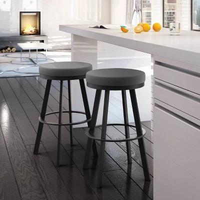 Whether you’re looking to round off seating arrangements for your kitchen island, breakfast counter or bar, the Amisco Swice swivel stool makes the perfect pick for your home. Crafted with a sturdy steel frame and a padded, upholstered seat, this round barstool adds chic style to your space. Fashioned with a backless silhouette, this compact and lightweight barstool is easy to move around and tuck under your breakfast counter.