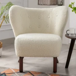 Modern Accent Chair Lambskin Wingback Tufted Side Chair With Solid Wood Legs-ModernLuxe