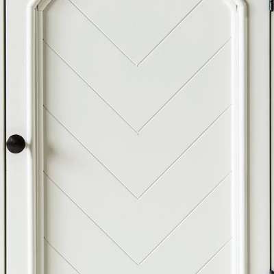 The Picket House Furnishings White Queen Panel 4PC Bedroom Set gives your room the look and feel of cottage charm. This set includes a bed, dresser with mirror and nightstand. Featuring chevron patterned veneers in a casual white finish. The headboard’s arch shape, astragal moldings throughout, and bun feet give this panel bed unparalleled style and individuality. Add this bedroom set to your home today!