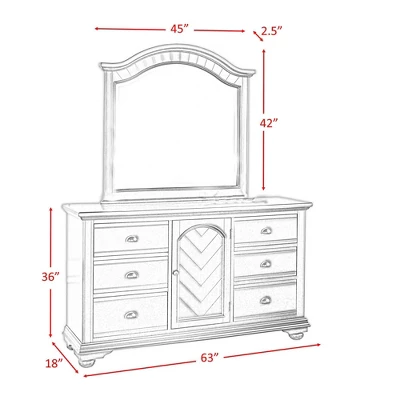 - Set Includes: Bed, Dresser, Mirror & Nightstand