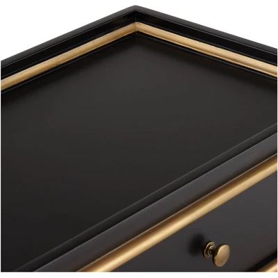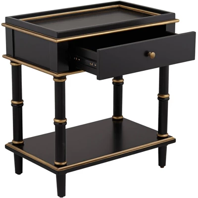 55 Downing Street Modern Luxe Wood Rectangular Accent Side End Table 15″ X 24″ With Drawer Shelf Black Gold For Living Room Home