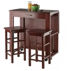 The Inglewood 5-Piece Dining Table Set with four Renaissance Chairs is sure to be the centerpiece of your dining room or eat-in kitchen. The tabletop has a softly curved profile supported by contoured, tapered legs that give it a graceful, refined look. The chairs feature an elegant keyhole back design and contoured seats. Together, they bring a touch of French country farmhouse into your home. Both table and chairs are made of Solid Wood for longlasting beauty and durability, and the rich Walnut finish brings out the warmth of natural wood grain.