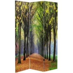 6″ Double Sided Autumn Footpath Canvas Room Divider Green – Oriental Furniture