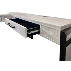 The Addison collection is inspired by antique, industrial tool boxes. Its dry Auburn finish highlights the natural beauty of the open grain veneers. Heavy iron casters with optional lock add function to the design. Black iron corner brackets and strapping add an element of authenticity, while light distressing enhances the aged appearance.