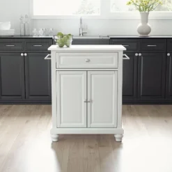Constructed of solid hardwood and wood veneers, this kitchen island is designed for longevity. The beautiful raised panel doors and drawer front provide the ultimate in style to dress up your kitchen. The deep drawer are great for anything from utensils to storage containers. Behind the two doors, you will find an adjustable shelf and an abundance of storage space for things that you prefer to be out of sight. Style, function, and quality make this kitchen island a wise addition to your home.