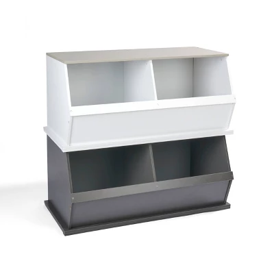 Badger Basket’s Two Bin Stackable Storage Cubby/Bin is a sturdy, modular storage solution for keeping all sorts of items tidy in any room. Features two, large, open compartments and it can be stacked with other bins to expand your storage capacity (each unit sold separately). Use for storing books, papers, media, dolls, toys, sporting goods, games, craft supplies, linens, and more! Wide mouth openings make it easy to load and unload. When you need to clean up quickly, it is a breeze to stuff everything inside! Great for kids when learning to sort and organize. Top surface offers an additional place to keep collections and treasures. Easy to clean, solid panel, smooth surface construction. Made of engineered wood with melamine lamination. Badger Basket’s Two-Bin units can mix and match with Badger’s Three-Bin and Shelf Storage units. Overall unit measures approximately 37.25 inches L x 19.25 inches W x 17.25 inches H. Each bin measures 16.75 inches L x 17.25 inches W x 15.75 inches H. Height from floor to top edge of front panel is 9.25 inches. Assembled weight: 30.5 pounds. All measurements approximate. Wipe clean and dry thoroughly. Adult assembly required. When stacking multiple bins, you must always use the included safety brackets to secure the units together. If stacking three or more bins high, we recommend using wall anchor/furniture safety straps (not included) to anchor the units to the wall for safety. Wall anchor straps are not included due to the many types of walls found in homes. Please consult with your local hardware retailer. Product may vary slightly from shown. Props/accessories shown are for illustration purposes only. Product complies with all currently applicable safety standards. Actual color/finish may vary from screen display. This item ships in its original carton that may include a product photo. Soft plastic/rubber toys (such as balls) can react with the finish when left in prolonged contact. Be mindful of what is stored in the unit.