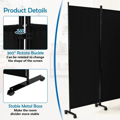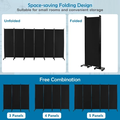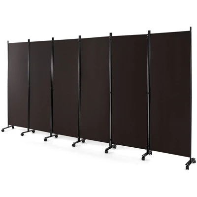 Costway 6-Panel Folding Room Divider 6FT Rolling Privacy Screen With Lockable Wheels Black/Brown/Grey/White