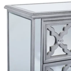 Glam Quatrefoil Mirror And Wood Storage Chest Gray – Olivia & May