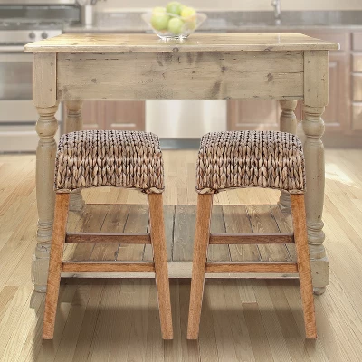 JONATHAN Y Maui Rustic Bohemian Hyacinth/Wood Backless Bar Stool, Brown Wash Woven Seat With Natural Wood Frame