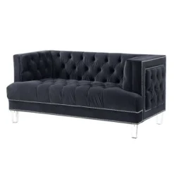80″ Virrux Loveseat Blue Velvet/Gold Finish – Acme Furniture