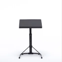 This Tray Table from Plastic Development is a convenient foldable tray table will allow to you keep your laptop and snacks close by while watching your favorite TV show. The height and angle is also adjustable to work in either situation. This steel black frame and heavy plastic top supports up to 40lbs. Folds for convenient storage.