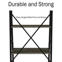 Lavish Home 4-Tier Ladder Bookshelf – Freestanding Industrial Style Wooden Shelving, Gray/Black
