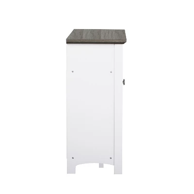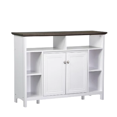 A great option for organizing and storage, this console table with storage serves as both an aesthetic upgrade and a functional place to keep workspaces neat and tidy. This console is made of particleboard and mdf and treated to a custom finish palette of bright white with a gray oak finish top. Open side shelves and open top compartments join shelves sitting behind two cabinet doors, offering ample space to gather necessities. With a romantic hint of cottage charm, it creates a stylish influence in living areas and in-home offices. Bright polished metal hardware wraps up a host of features chosen to create a modern look of elegance. This console table with storage measures 47.5 inches wide x 15.45 inches deep x 36 inches tall.Saint Birch’s mission is to help everyone create a better home, where one can find affordable style and comfort. We strive to ensure every customer’s experience with our products is warm, worry-free, and comfortable.
