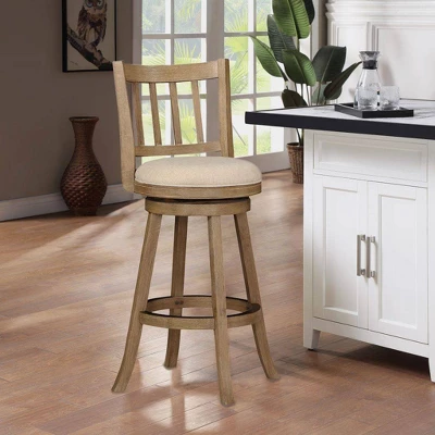 Bring some inviting, traditional style to your space — while keeping things as comfortable as can be — with the Sheldon Barstool from Boraam. This round wood barstool keeps things comfortable with the cushioned seat, rounded high back and footrest, while the tapered legs and vertical slatted design keep a classic look you’ll love. Just line a few of these up at your bar area for an easy place to enjoy sips and snacks with friends.
