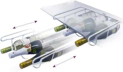 - REFRIGERATOR WINE BOTTLE RACK Easily slides onto refrigerator shelf for visible storage of your favorite wine bottles Rack keeps bottles slightly tilted so the cork doesnt dry out Allows wine to stay fresh for an extended period of time