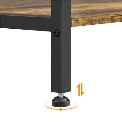 • Style and functionality meet in harmony with this baker’s rack. This utility shelving unit sports a rustic weathered finish and matte black frame for an effortless rustic/farmhouse look while adding a generally-sized countertop, 4 open shelves, a basket and 6 hooks to your kitchen, living room or pantry. Crafted with CARB P2-compliant manufactured wood and a powder-coated steel frame, to offer a firm feel, this microwave stand boasts high strength and durability and will bring you no worries about the harmful emissions at all.